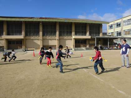 快晴に恵まれたこの日、おやじの会の方が1/2成人式だけではなく、「新春 走って 食べて スポーツして 遊ぼう会」も催して下さいました。