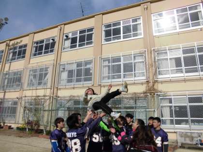 そして、佛教大学のアメフト部のメンバーに、「1/2成人、おめでとう!!」と一人ずつ祝福の胴上げをしてもらいました。