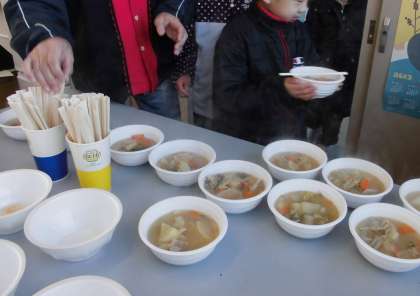 さらに、おやじの会の方が朝早くから準備し作ってくださった豚汁をいただきました。