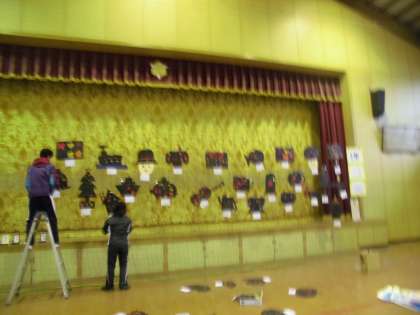 体育館では、保護者の方や地域の方に子どもたちの作品を鑑賞していただこうと、準備をしています。