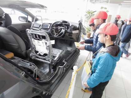 オートリサイクルセンターでは,使い終わった自動車をただ捨てるのではなく,使える部品やエネルギーを利用しようとする工程を見てきました。
