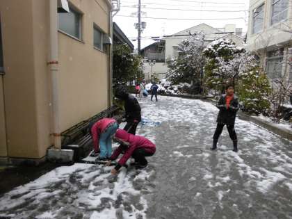 今日は、朝から雪。運動場や中庭には、少し雪が積もりました。