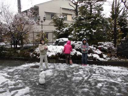 雪が降ることはあっても、積もることはまれなので子どもたちは大喜びです。