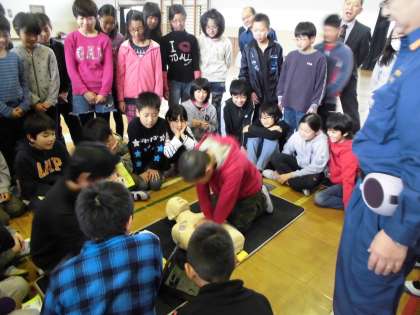まず最初に,消防署署員さんに救命法の大切さを聞きました。