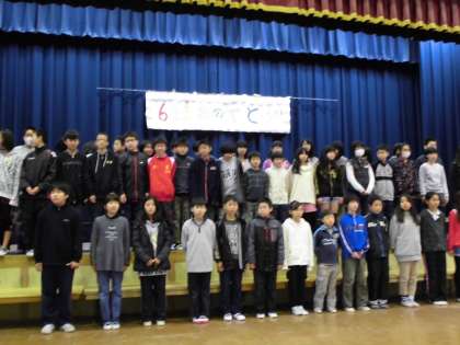 この日のために、各学年で6年生へのプレゼントを作ったり、模造紙でお祝いの掲示物を作ったり、歌の練習をしたりしてきました。