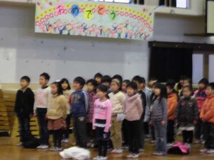 2年生は「音楽のおくりもの」の歌を、3年生は「パフ」の歌とリコーダーを聴かせてくれました。