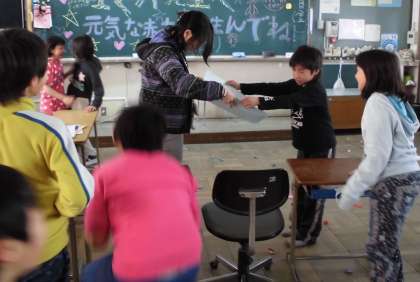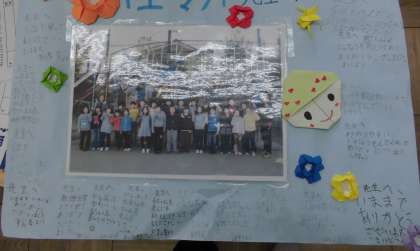 運動場で楽しく遊んだ後、教室の戻って一人ずつ先生に「1年間ありがとうございました。元気な赤ちゃんを産んでね!!」とメッセージとプレゼントを贈ってくれました。