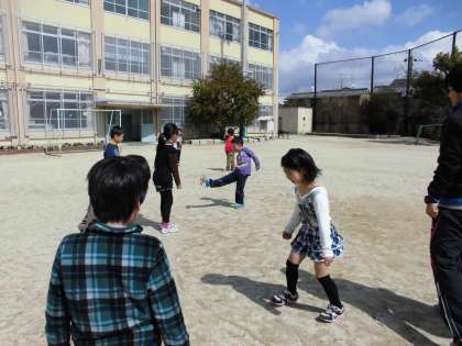 1年生が「となりの国」の学習で、韓国・朝鮮の遊びである『チェギ』と『ペイン』をして遊びました。