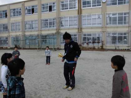 サッカーが上手い担任の先生が、見本を示してくれました。