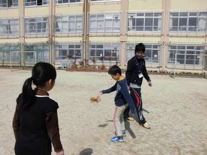 子どもたちもそれを真似して何度もチャレンジするのですが、やはり1年生には難しいようです。