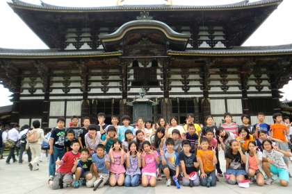 午後は東大寺の大仏見学です。奈良の大仏として有名です。途中にはたくさんの鹿がいて,子どもたちもびっくりでした。大仏の大きさは目を見張るものがあり,子どもたちは「おー」と驚きの声をあげていました。当時,仏教を大切にしていた先人たちの思いが子どもたちにも伝わったのではないかと思います。