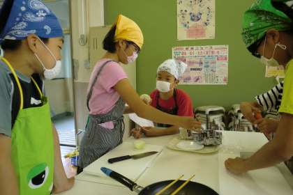 次は実際に調理実習を始めた場面です。5年生の時も2回調理実習を行っていましたので,子どもたちも手際よく進めていきます。包丁で野菜を丁寧に切っていきます。いちょう切りや短冊切りなど,切り方も上手に使い分けています。
