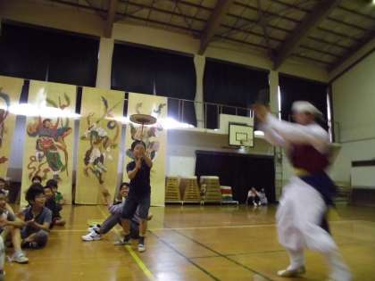 空飛ぶ皿回しに挑戦させてもらった人も。