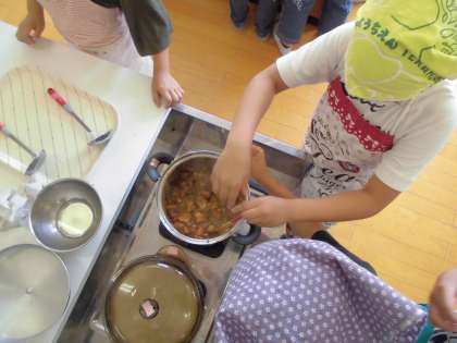 初めて自分たちで作った料理はおいしかったようです。あっという間に完食しました。