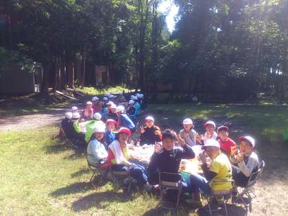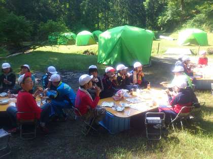 朝ごはんは、『パックドック』です。パックに入れて焼いたパンは、おいしかったです。アップルジュースと一緒においしくいただきました!