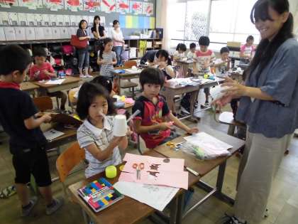 折り紙を貼ったり,色を塗ったり,丁寧に仕上げていました。