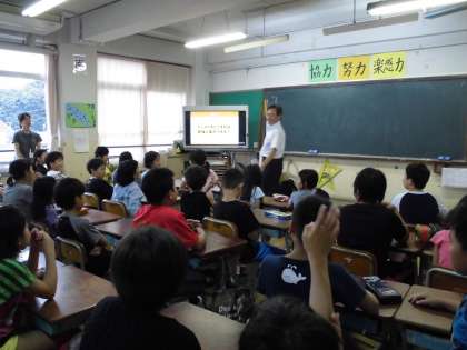 4時間目は,ALTのエバン先生と「何が好きですか?」と尋ねたり答えたり,