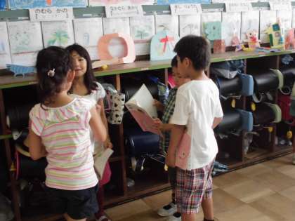 今,国語は「おおきなかぶ」の学習を進めています。「おむすびころりん」では,音読発表会をしましたが,今度は音読劇です。登場人物になりきって,子どもたちは劇の練習を頑張っています。「かぶを抜く動きを入れてみよう!」「どんな風にセリフをいえばいいのかな?」「だんだん声を大きくしていこう。」とグループごとに工夫している様子が見られます。いよいよ,次の時間は発表会です。子どもたちはやる気満々で,とても楽しみです。