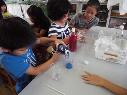 完成したときは,子どもたちはとても嬉しそうな表情でした。完成したスライムを伸ばしながら,誰が長く伸ばせるか競っている子どももいました。楽しく活動できたようで良かったです。