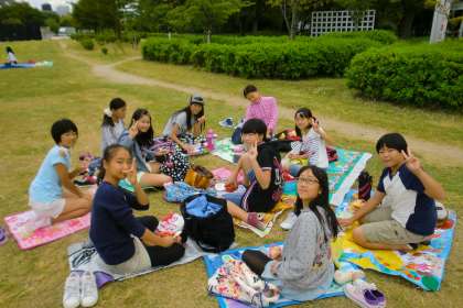 写真はその後の梅小路公園でのお弁当風景です。みんな仲良く食べてリフレッシュできました。