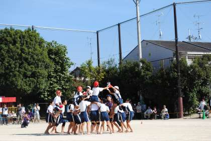 歌を歌いながら赤組・白組の騎馬が,勇ましく登場してきました。団体戦・個人戦・大将戦が行われ,風・雷のごとく騎馬がグラウンドを駆け巡りました。帽子を取るたびに,応援の声もさらに盛り上がっていきました。