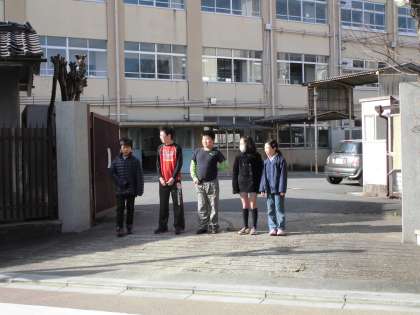 今年度最後の登校の日。5年2組が挨拶運動の当番です。