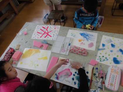4年生になって初めての図工をしました。「すてきなペーパーショップ」という学習です。今日は,色々な道具を使って,画用紙に模様作りをしました。色や使うものを工夫しながら,きれいに模様作りができました。楽しく活動できて子どもたちも笑顔いっぱいでした。