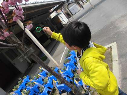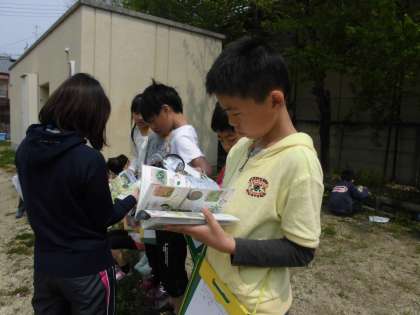 理科の学習で春の植物を観察しました。「タンポポにも種類があるんだなぁ。」「触ってみるとさらさらしているよ!」などとたくさんの発見をしました。細かいところまで観察して,スケッチしている様子にはすっかり三年生らしさが見られました。虫メガネの使い方も,もう完璧にマスターできました。図鑑を片手に,小さな植物博士の様ですね!!