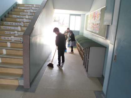 昼休みの後,掃除の時間が始まります。チャイムの合図で2年生以上の児童がみんなで掃除をします。遊んでいる人が誰もいないのが素晴らしいです。みんな一生懸命自分の担当場所を掃除しています。お陰で学校の中はとてもきれいです。お掃除ありがとう!