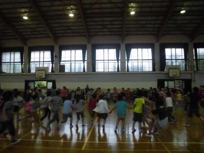 土曜日から始まる,「みさきの家」の宿泊活動でのキャンプファイヤーに向けて6年生と一緒に活動しました。「マイムマイム」や「もうじゅうがり」のやり方を教えてもらいました。本番では,これを生かして,みんなで盛り上げ,楽しんでほしいと思います。