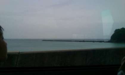 みさきの家に向かってバスに乗りました。途中に楽只小学校のお友達も一緒に乗り込んできて、一緒にみさきの家に向かいます。バスの中では自己紹介をしました。海が見えて興奮ぎみです。
