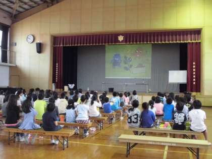 2年生と6年生が,花育活動で,フラワーアレンジメントの体験をしました。初めに,「季節と花」のお話を聞きました。その後,お花の名前や特徴を教えていただいて自分でお花を選びました。いよいよ花を生けます。先生方のアドバイスをいただきながら,一生懸命工夫して生けていました。6年生が2年生を手伝う姿も見られました。素敵な作品が出来上がり,みんな大満足でした。
