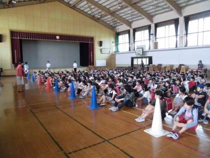 4時間目に避難訓練を行いました。緊急地震速放送聞いて机の下に1次避難し,その後担任の指示に従い体育館に整列しました。初めての訓練にもかかわらず,保護者の方々が放送を聞きスムーズに移動していただいたおかげで,混乱もなく短時間でお家の方に児童を引き渡すことができました。ご協力ありがとうございました。