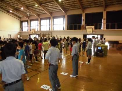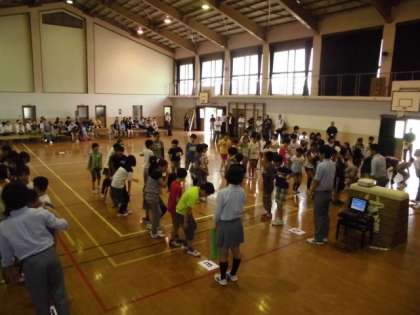 この会は,3小学校児童および嘉楽中学校の生徒会による交流を図るものです。司会をはじめ,子どもたちの手による,子どもたちのためのものです。当日は,嘉楽中学校の生徒会のみなさんが,上手に会を盛り上げてくれました。おかげで,和やかな雰囲気の中,交流を進めることができました。やがて,同じ中学校に進学する仲間が交流を深めることができたことは,とても有意義でした。