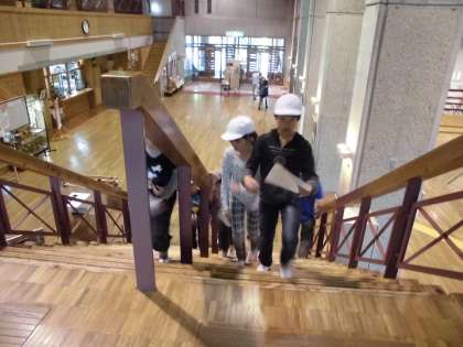 雨がまだ降っているので、今日は館内ラリーをしました。館内に、たくさんのしるしが隠されていて、星座・花・昆虫などのジャンルに合わせて、探し回ります。一人で探せないものも、二人ならば探せるし、五人ならば、もっとたくさん探せます。グループで力を合わせていろいろなところを探し回りました。