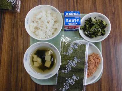 今日は夏休みが明けて初めての給食の日です。今日から新しい食器で給食をいただきます。今までのアルマイト食器からポリエチレンナフタレート(PEN)食器に変更になりました。白くてきれいな食器です。温かいみそ汁も,熱くなく持ちやすくなりました。新しい食器でいただく給食は,今まで以上においしく感じられます。