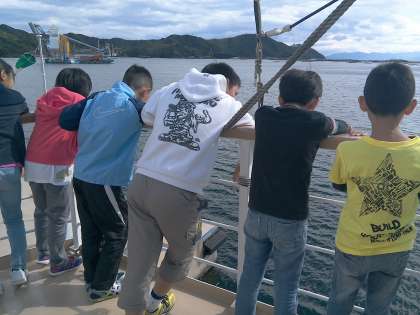 うず潮を見るために観潮船に乗りました。大きな船で風がものすごく強く吹き飛ばされそうでした。明石海峡大橋沿いではうず潮がたくさん見られました。最高でした。
