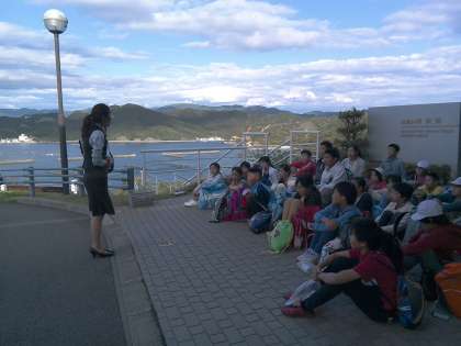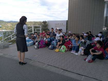 宿に着きました。ホテルでは,お風呂場から明石海峡大橋が見えます。泳げそうなくらい大きなお風呂でした。みんな元気です!