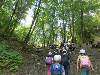 先週金曜日(5/27)に校外学習で大文字山に行ってきました。前日の雨で山道はぬかるみ,滑りやすくなっているところもありました。登れるか不安に思っていましたが,早朝より校長先生が「子どもたちのために」と下見をし,登山のためのアドバイスをしてくださいました。そのアドバイスをおおいに参考にしながら,子どもたちはがんばって山を登っていました。そして,お互いに「ここ危ないから気をつけて!」「もう少し!頑張ろう!」と声を掛け合いながら心ひとつに登りきることができました。やっとの思いでたどりついた頂上からの景色に子どもたちは感動していた様子でした。学校から教頭先生が鏡を使って光を送って下さいました。その光が大文字山の頂上から見えると子どもたちは大喜びでした。貴重な体験をすることができました。