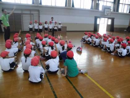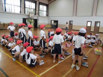 今年度「はじめて」の楽只小学校との合同学習がありました。今回は,体育科の「エンドボール(1)」の学習を一緒にしました。まず,楽只小学校の仲間が自己紹介をした後,運動場と体育館に分かれて,それぞれ活動をしました。運動場では試合をして,体育館ではパス練習をしました。はじめは,少し恥ずかしそうにしていた子どもたちでしたが,時間が過ぎるのとともに,打ち解けていく様子が見られました。特に,体育館でのパス練習時には,パスをする相手の名前を呼ぶことをルールとしていたのですが,それぞれの学校の子どもたちが仲間の名前をしっかり呼んでいる姿が印象的でした。なお,3年生は,今回を含めて年間3回,合同学習を予定しています。楽只小学校の3年生のみなさん,これからもどうぞよろしくお願いします。