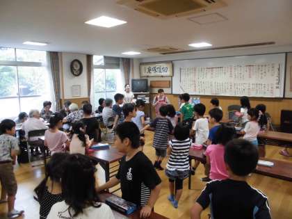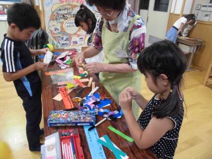 紫野地域の女性会の方に教わって,「七夕の短冊作り」をしました。折り紙の折り方をていねいに教えてもらったり,一緒に飾りを切ったりしました。短冊に願い事も書いて,笹に飾りました。7月7日天の川が見られますように!そして,願い事がとどきますように!