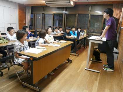 明日のキャンプファイヤーに向けてレクリエーション係の人は「どんなキャンプファイヤーにするか」を話し合いました。「盛り上がるキャンプアィヤー」「仲良くなれるキャンプファイヤー」にしようということに決まりました。