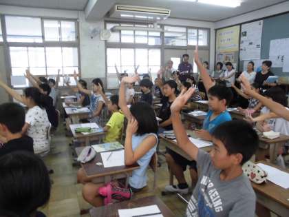 ゲームや歌,チャンツを通して英語に親しむ子ども達は,みんな笑顔です!