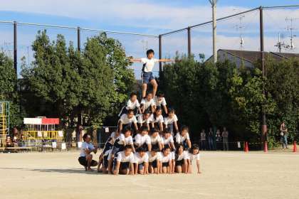 係活動では,周りを見て進んで行動したり,組体操では,大変立派な演技を披露してくれました。全力でやりきった子ども達の目には,涙を浮かべる子もいました。