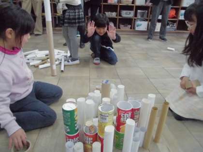 高く積み上げたり,たくさん並べたり,たたいて音を鳴らしたりして,子ども達の発想力は大変素晴らしいものでした。