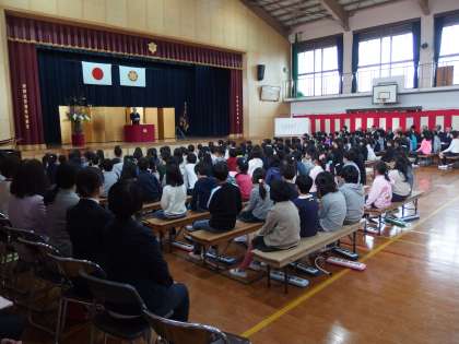 少し緊張した顔をして校門をくぐった1年生は,6年生に連れられて教室に向かいました。入学式では,起立,着席,あいさつがしっかりとでき,お話を聞いたり,担任の先生の名前を言ったりすることができました。2年生からは,学校紹介や素敵な演奏もありました。