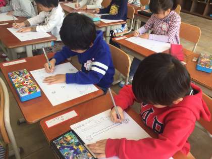 入学してから1週間,子どもたちはいろいろなことを学習しました。担任の先生だけでなく,養護の先生や栄養の先生にも学校のことを教えてもらいました。また,お手本を見ながら,初めて自分の名前を書きました。鉛筆の持ち方や姿勢にも気を付けて,一画一画丁寧に満足した字を書くことができました。