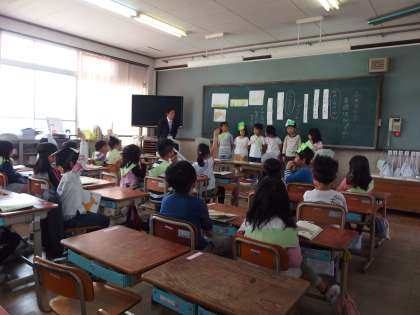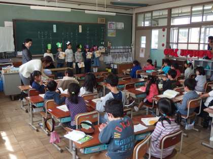 2年生は,国語の学習で「ふきのとう」の音読発表会をしました。班ごとに分かれ,お面やたすきを,役割によって身につけ,声の強弱や身振り手振りなど,班で気をつける点を意識しながら発表を行いました。たくさんの人の前で少し緊張した様子でしたが,みんなで協力して取り組むことができました。聞いている子どもたちも,気をつける点を意識しながら発表を見ることができました。