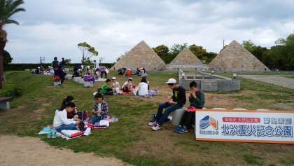 いい景色の下,芝生の上で友達と楽しく食べるお弁当は,最高です。