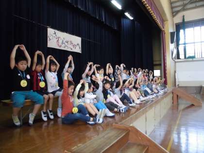 1年生は,全校児童や多くの保護者の方々の前で,マイクも使わず,自分の名前と好きな食べ物を発表する自己紹介もしっかりできました。